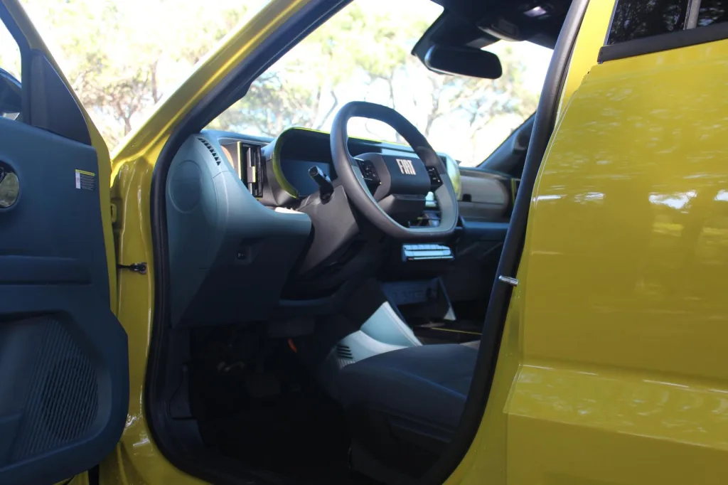 Não! Mas é uma condução muito ágil em cidade. O Panda revelou-se bastante confortável nos trajetos realizados, sem falar que nas lombas demonstrou um conforto muito acima da média, já que é muito macio… e nós gostamos disso!A posição de condução continua fiel aos seus antecessores: alta e com boa visibilidade. Mesmo na posição mais baixa do banco, continuamos “altos”. Os bancos são confortáveis e ainda trazem uma frase simpática: “PANDA MADE WITH LOVE IN FIAT”. No volante, outra estreia: a regulação em profundidade. É ampla? Não. Mas existe, e isso é o que importa!
