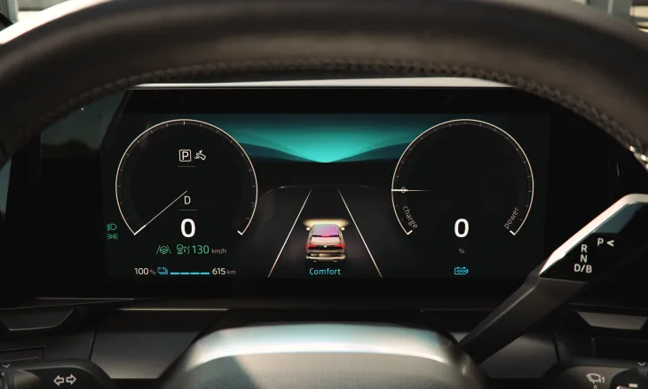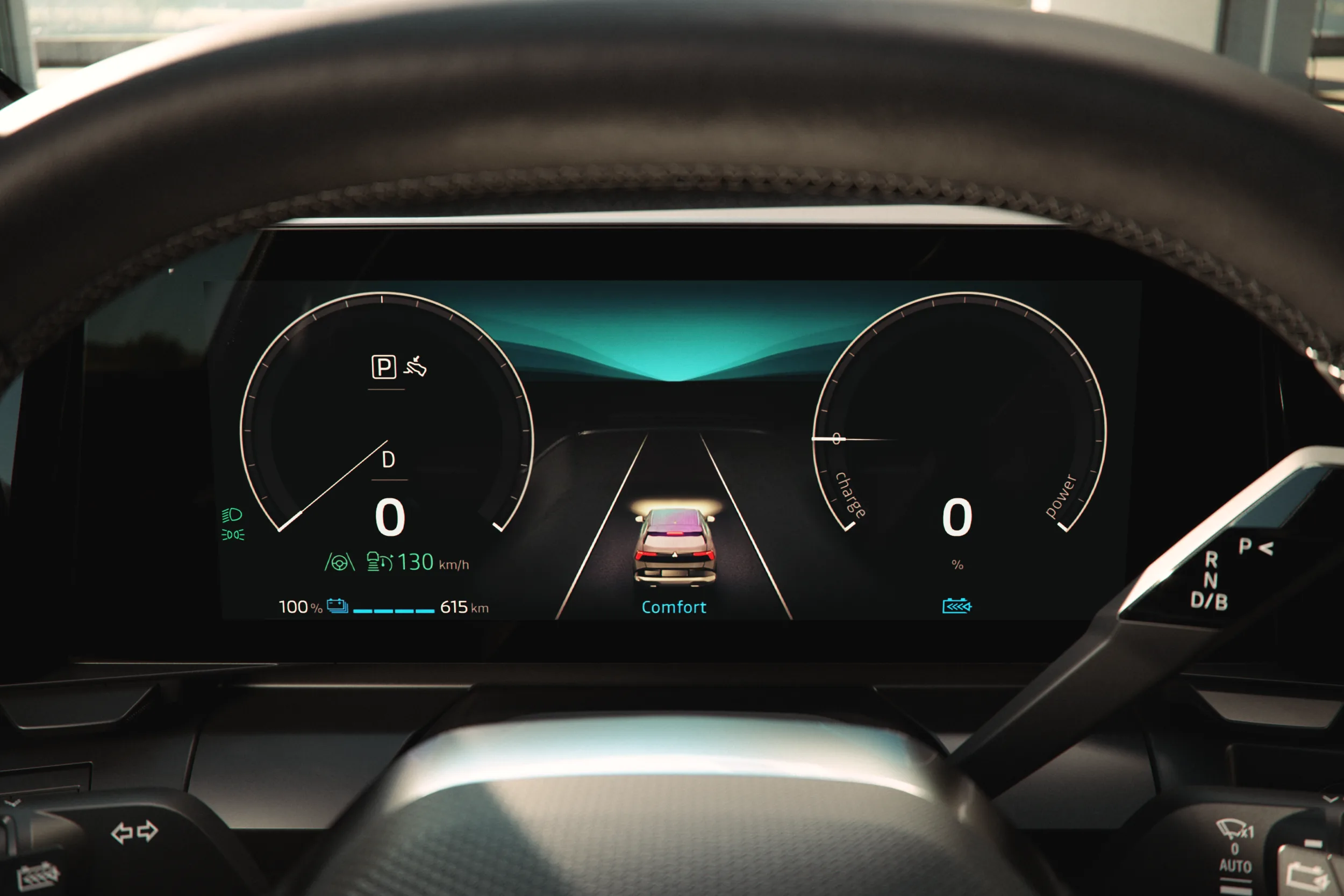No habitáculo, o ecrã de infotainment de 12” é a interface central da experiência digital. A resolução de 960 x 1280 do ecrã vertical 3:4 permite uma clareza instantânea das informações e, com uma barra de navegação fácil de utilizar na parte superior, simplifica o acesso e a mudança entre diferentes funções e informações. O ecrã central é complementado pelo Digital Driver Display de 12,3”, que apresenta os dados mais importantes de forma clara para o condutor, minimizando distrações e ajudando a manter os olhos na estrada.